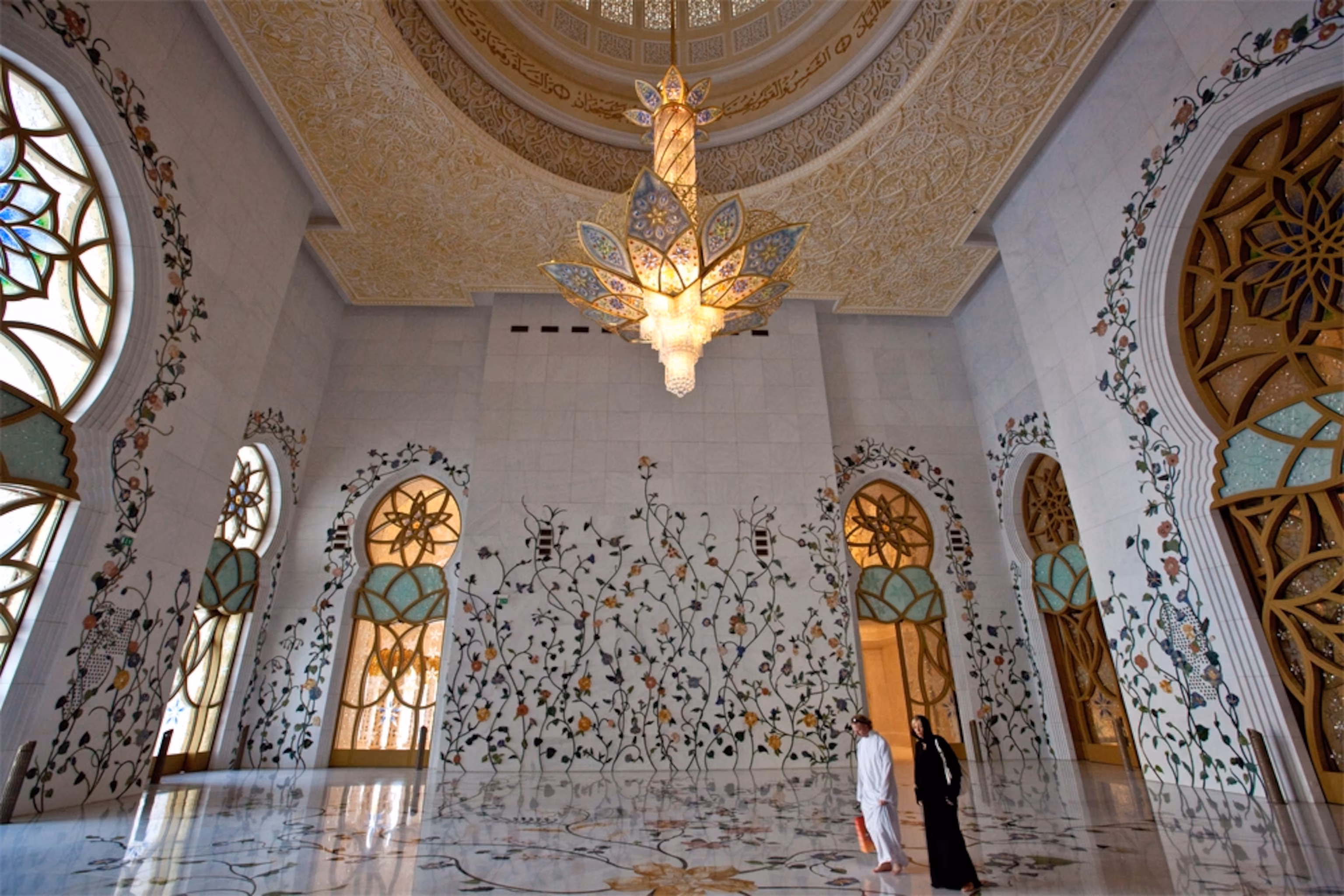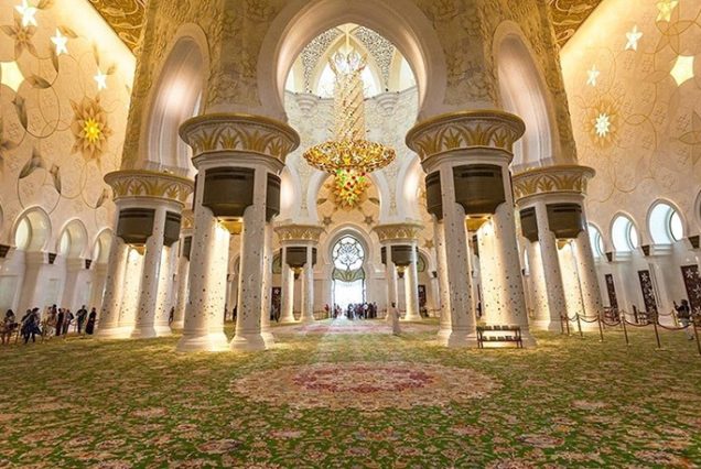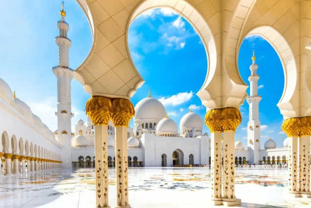 Step into a world of divine beauty at the Sheikh Zayed Grand Mosque in Abu Dhabi. This architectural masterpiece, one of the largest mosques globally, is adorned with pristine white marble and intricate floral designs. As you wander through its vast courtyards and prayer halls, you’ll be awestruck by the mosque’s 82 domes, 1,000 columns, and the world’s largest hand-knotted carpet. Don’t miss the stunning chandeliers, which feature millions of Swarovski crystals, casting a heavenly glow throughout the mosque.